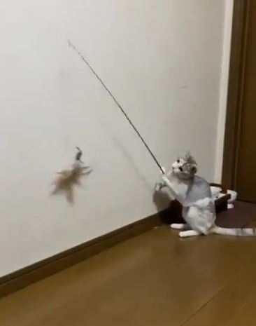 用逗猫棒逗弄猫咪、陪它游玩,是身为饲主再日常不过的工作了,但你可有看过,自己拿逗猫棒「玩自己」的猫咪吗?日前,一位日本饲主なお在网上共享一段视频,视频中,猫咪双手举举、把逗猫棒抛向空中,然后再自己「跳接」逗猫棒,相同的动作重复了好几次,猫咪玩得自得其乐,饲主看得也直发笑,共享到网上后更逗乐了广阔网友。