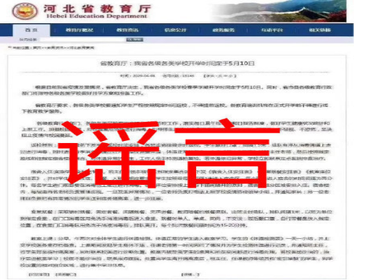 据悉,这张相片的布景是湖北教育厅,内容说的是河北省的各级各类校园将在5月10开学。或许是由于这张图片太传神了,简直一切的河北家长和学生都信任了这个音讯,说会在5月10开学。