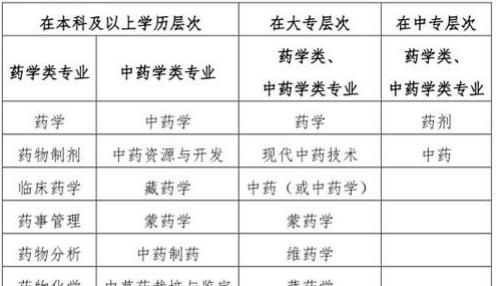 报考条件中要求的“药学类、中药学类专业”,依照国务院学位委员会、教育部印发的《学位颁发和人才培养学科目录设置与管理方法》《一般高级学校高级工作教育(专科)专业设置管理方法》和《学位颁发和人才培养学科目录》《一般高级学校本科专业目录(2012年)》《一般高级学校高级工作教育(专科)专业目录(2015年)》等规则,对照学科目录来界定。
