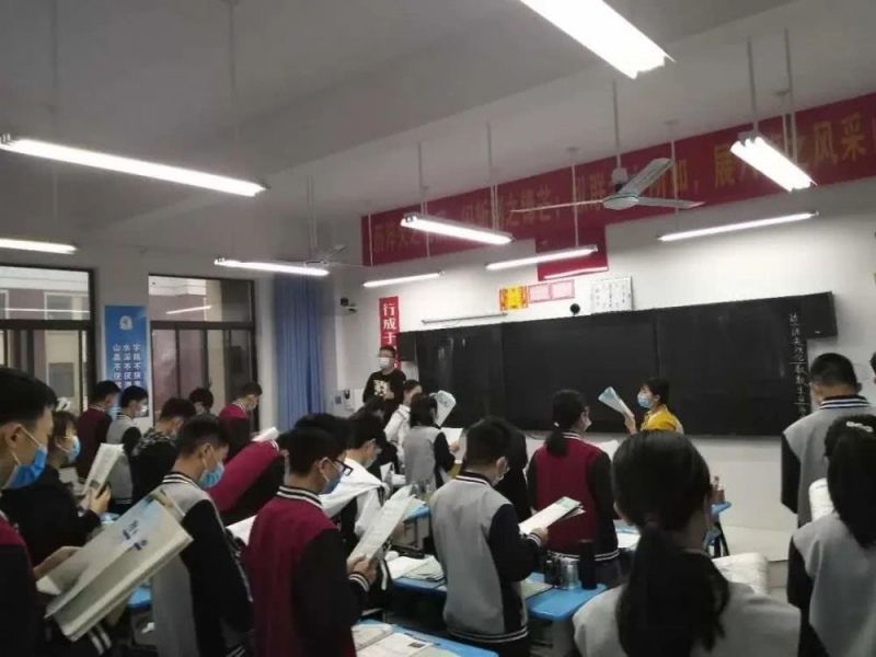 7:40—7:50学生发誓、歌唱,夸姣且严重的一天开端了。劝君惜岁月,为师费心神。