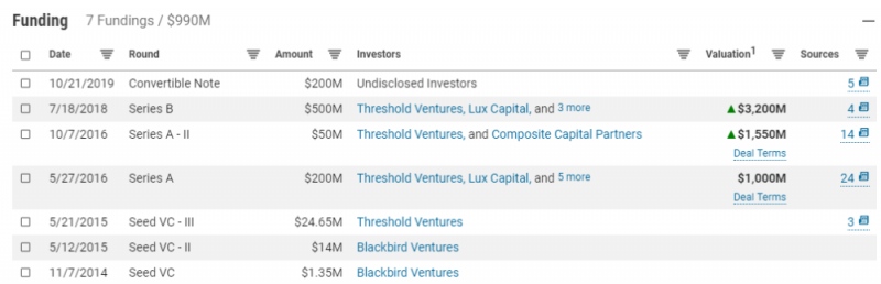 Zoox 成立于 2014 年 7 月,总部位于美国加州。据 CB Insight 数据,Zoox 成立以来融资总额接近 10 亿美元。最近的一次融资完成于 2019 年 10 月,金额为 2 亿美元。融资完成后,最新的估值为 32 亿美元。