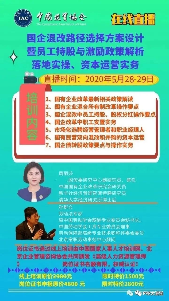 关于举行遵循《政府出资法令》在稳出资局势下地方政府项目的策划与落地及渠道公司市场化转型开展形式与实践专题“线上直播”训练班告诉