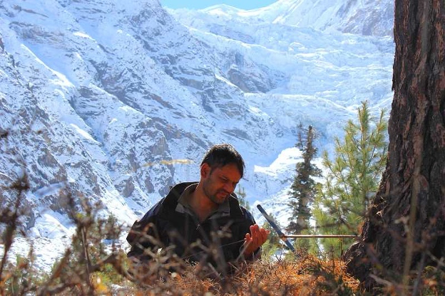 图1. Shalik Ram Sigdel在尼泊尔Manang保护区展开喜马拉雅冷杉树线样地查询