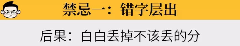 而作文中出现的错别字也是很丢分的,规定两个字扣一分,最多可扣3分。不过,据改卷老师说,错字特别多的卷子会影响老师的心理分,可能本来该得50多分的作文,因为老师印象不好,最后只打40多分,一丢可能就是5分甚至更多,那才是最令人遗憾的。