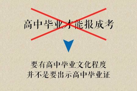 成考招生简章原文写着:“报考高中起点升本科或高中起点升专科的考生应具有高中结业文化程度。”一些大意的考生就把这句话看成了“应具有高中文凭”。